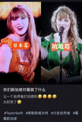 也有歌迷对比泰莱上月在日本开场一头柔顺直发的样子,笑称“你们新加坡对霉霉做了什么”。