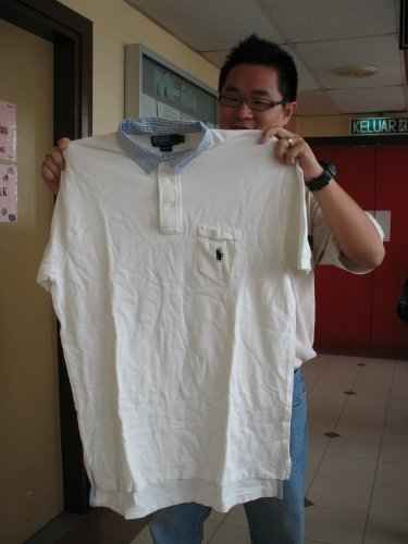 他说,他是在一次出席应酬场合时,穿上425令吉白色蓝领T恤。经过清洗后,衣服竟然变得宽大无比,连胸前口袋都变形。他之前试穿这件衣服时,非常合身。