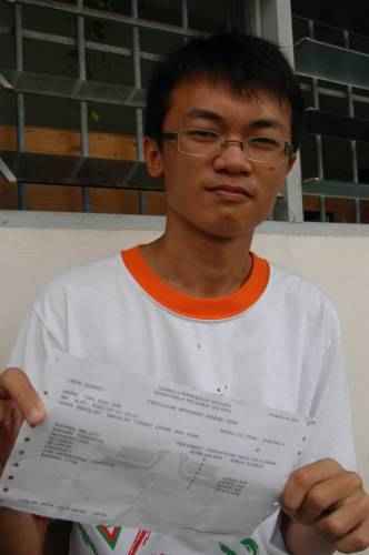 陈所均考获7A1B的佳绩,考获B等的是国文。他受访时说,周二早上领取成绩单后,他有种太可惜的感觉,只差国文他即可考获大满贯成绩。