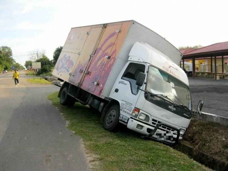 (森美兰.淡边7日讯)一辆面包罗里昨日傍晚经过淡边芙蓉联邦公路时,失控撞向路边沟渠,罗里车轮卡在沟渠处,动弹不得,司机则饱受一场虚惊。