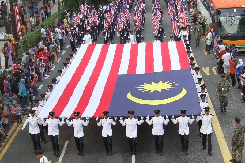 (雪兰莪.八打灵再也31日讯)针对网民质疑国庆庆典游行中的国旗倒反一事,大马国防卫队总部公共事务主任巴克提亚诺解释,国旗游行的礼仪是,国旗绑在旗杆的那一边(即蓝底及6道红白相间的横条)永远先行,飞扬处(14道红白相间的横条)则在后。