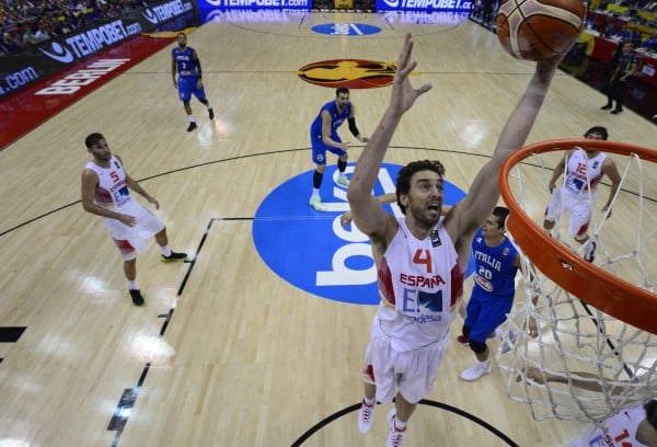 (德国.柏林9日讯)近3届豪夺2冠的“斗牛士”西班牙昨日在欧洲男篮锦标赛B小组第3轮以98比105不敌意大利,NBA巨星卡索尔即使轰进全场最高的34分10篮板5助攻也无能为力。