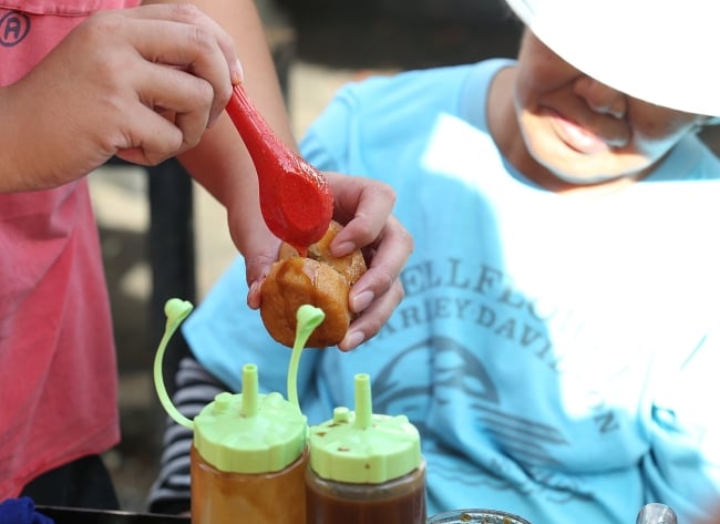 回不到从前,不能溜进学校食堂吃炸虾饼,只好吃豪华版的炸虾饼和炸豆腐。(图:星洲日报)