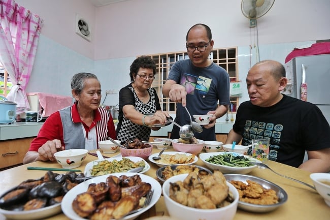 跟着龙哥回家吃饭,左起是龙爸曾柏荣和龙妈邹顺芳。(图:星洲日报)