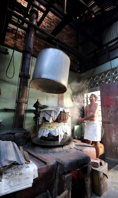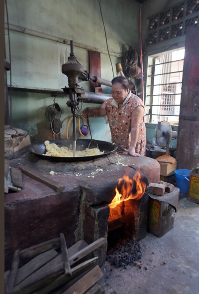 沈亚妹每天都在这种热气逼人的环境下劳作,显见制做糕饼的过程不简单。(图:星洲日报)