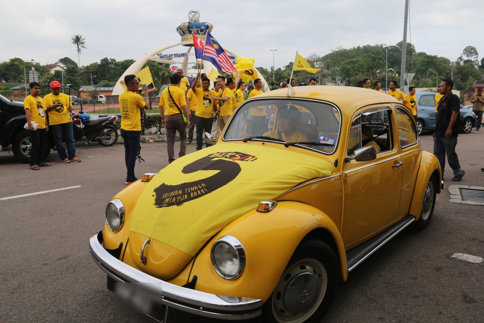 其中一名净选盟5.0支持者驾驶的黄色甲虫车令人眼前一亮。 (图:星洲日报)