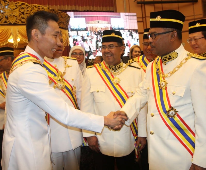 甲州元首颁赐D.C.S.M拿督威拉勋衔予李宗伟。(图:星洲日报)