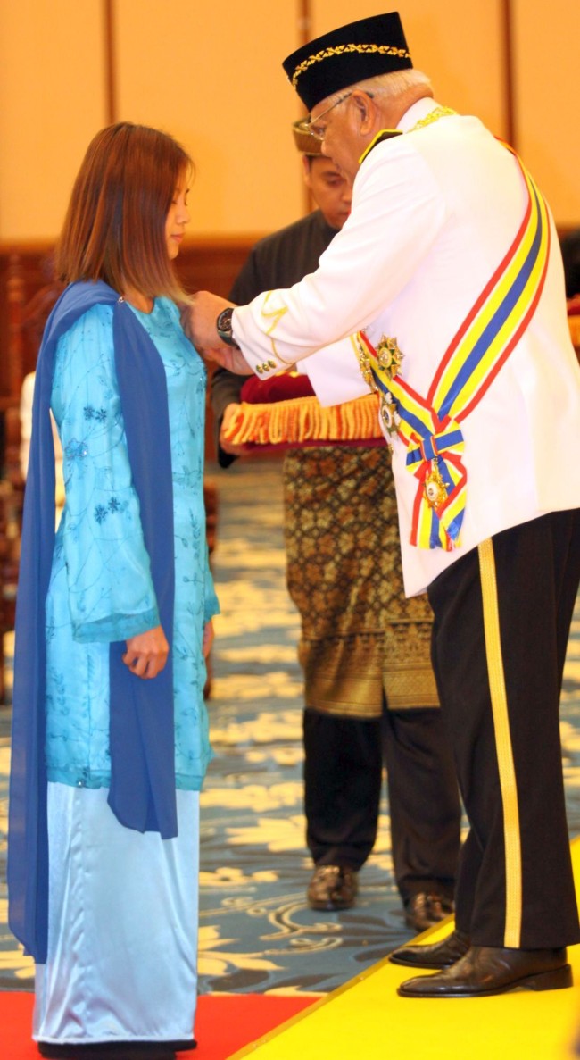甲州元首册封B.C.M有功勋章给吴柳莹。(图:星洲日报)