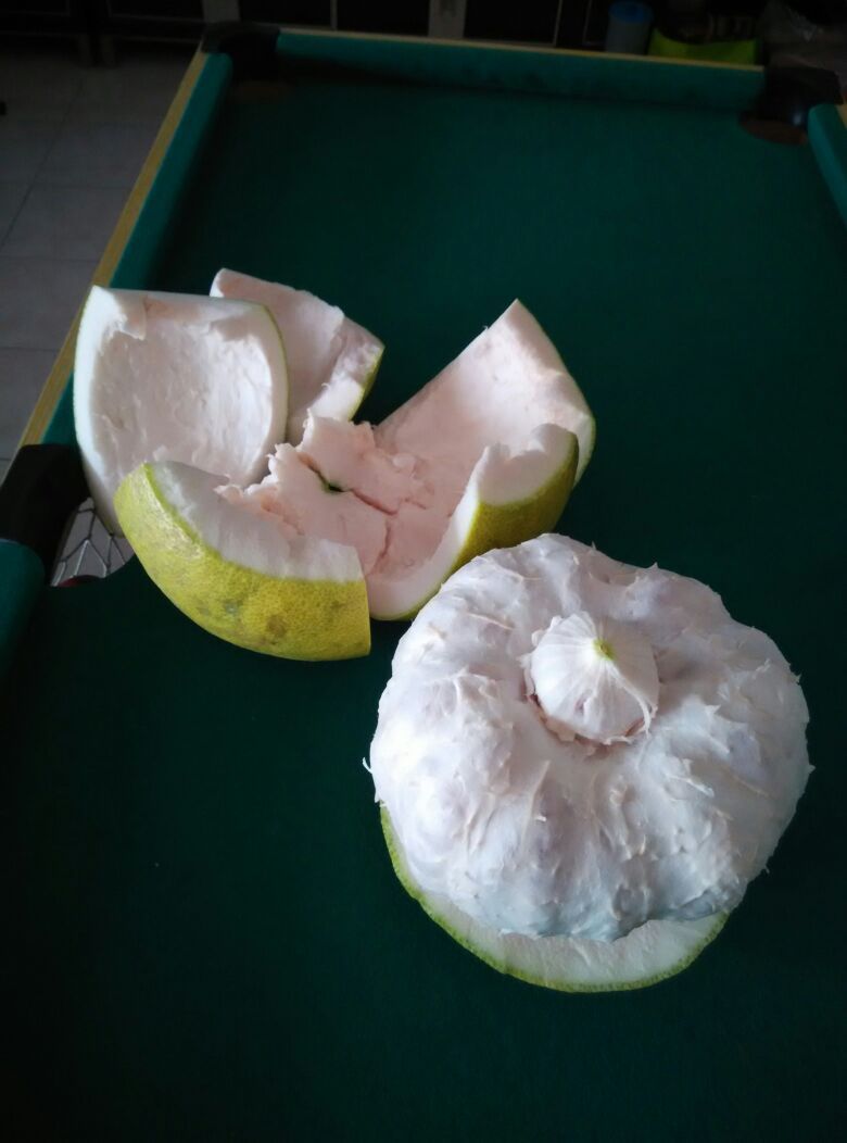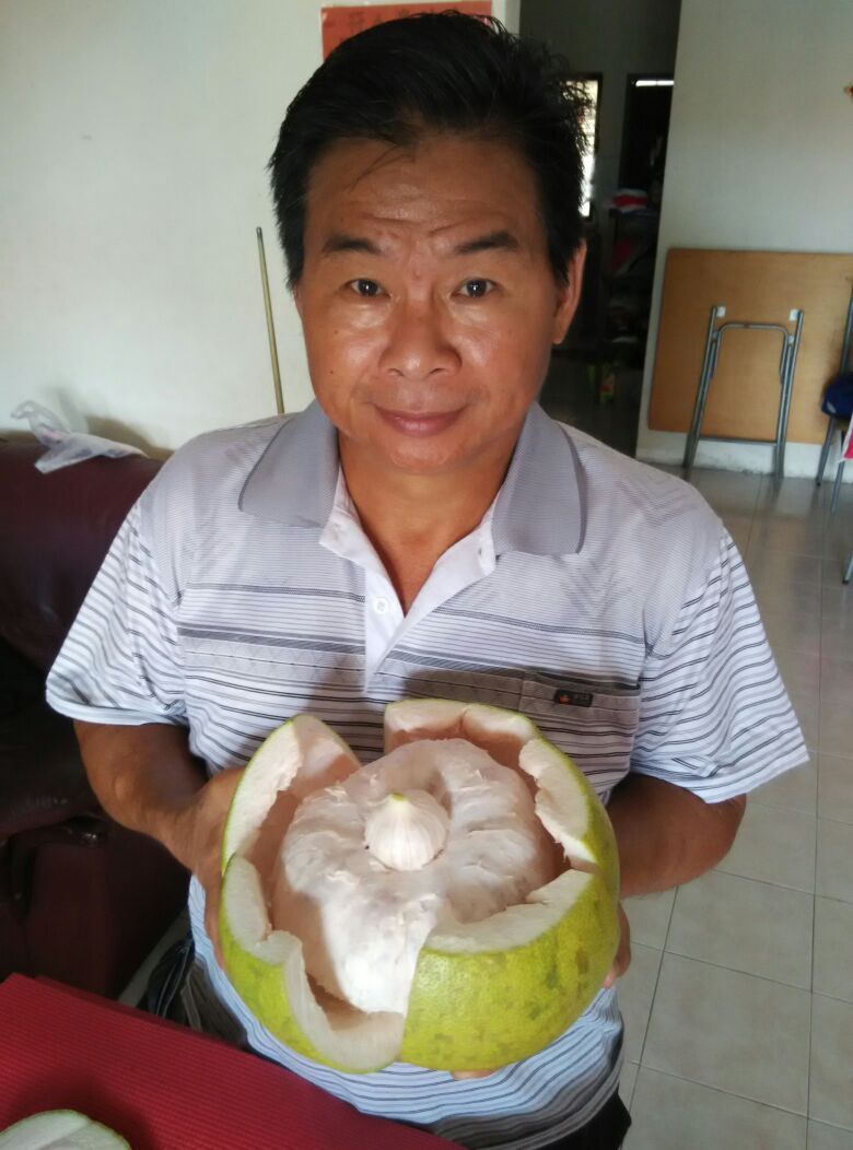 市民黄光明说,他上周在吉隆坡购买该普通柚子带回家乡后,今日剥开柚子时惊觉柚子顶端上还有一粒“小柚子”,看起来很特别及可爱。