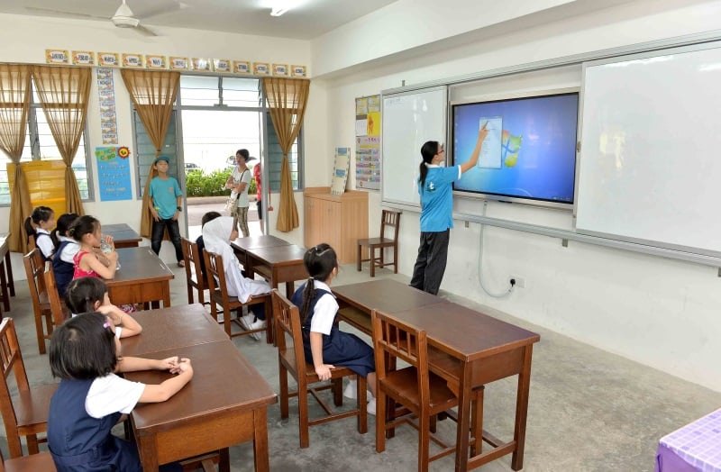 “加上我们现在是采用智能教学模式,所以只要我们有电子版的课本,就可以直接载入平日用作教学的互动式电子白板,那就能让班上的学生都可看到课本内容了。”