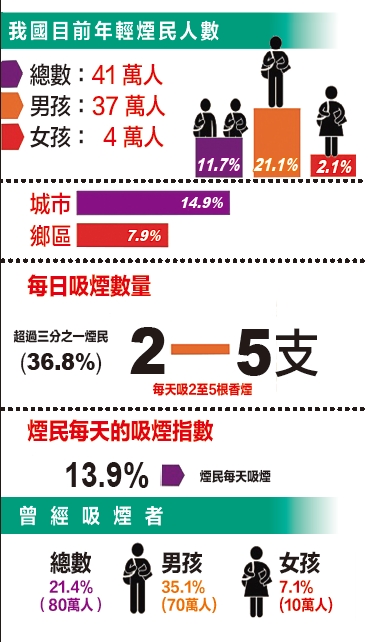 当中超过三分之一的青少年烟民每天吸2至5支香烟。