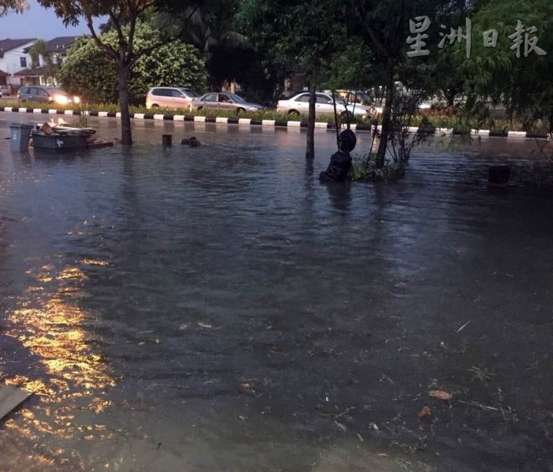 2小时豪雨沦陷了…….万佳市默迪卡花园淹