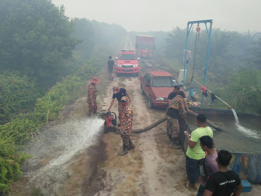 地底井水水管应急“原本尝试在林火地点附近的水沟汲水,但发现沟水已呈干涸状态,唯有暂依靠地质矿务局(JMG)的地底井水水管(Telaga Tiub)应急。”