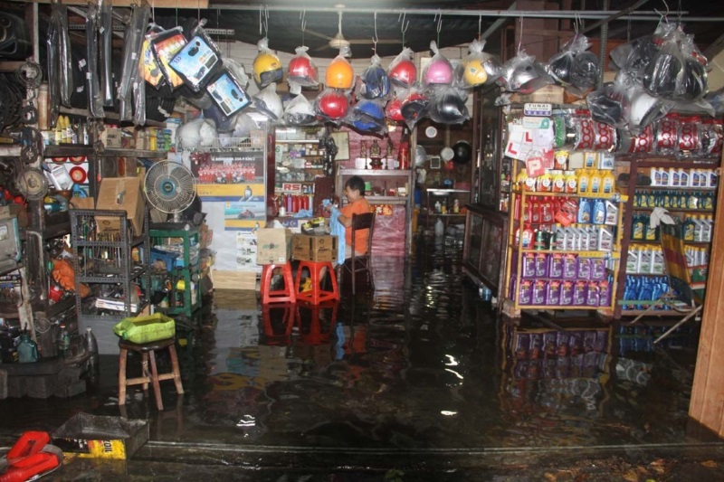 勿刹路摩哆车店东主周成珠(59岁)说,今日下午的大雨来得太快,大水迅速的由屋前的沟渠流入店内,由于店内所有的货橱都已垫高,否则后果不堪设想。