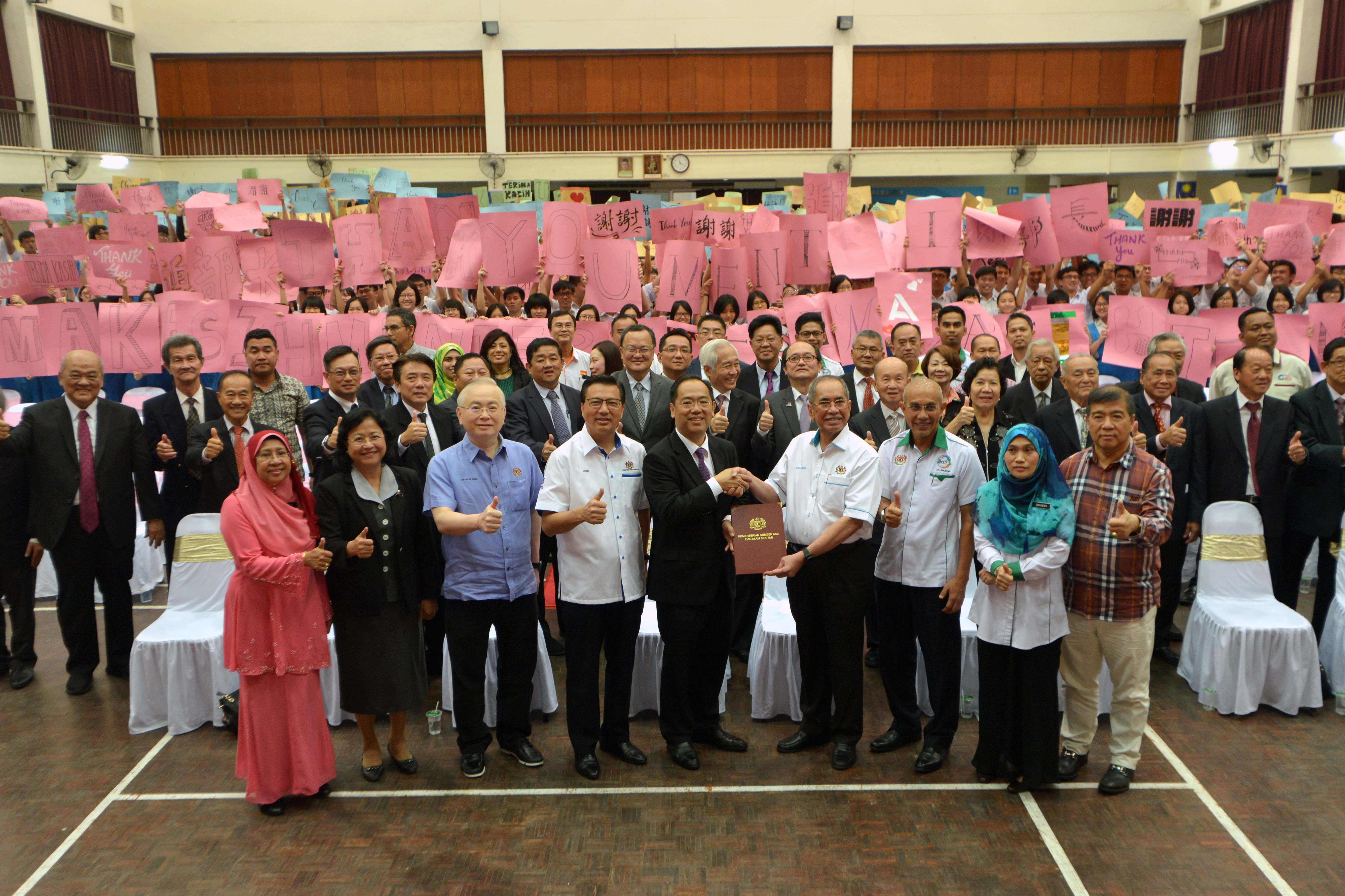 旺朱乃迪今日到访吉隆坡中华独中,并在土地租约移交仪式上将99年土地租约移交给吉隆坡中华独中,由董事部丹斯里林景清代领。