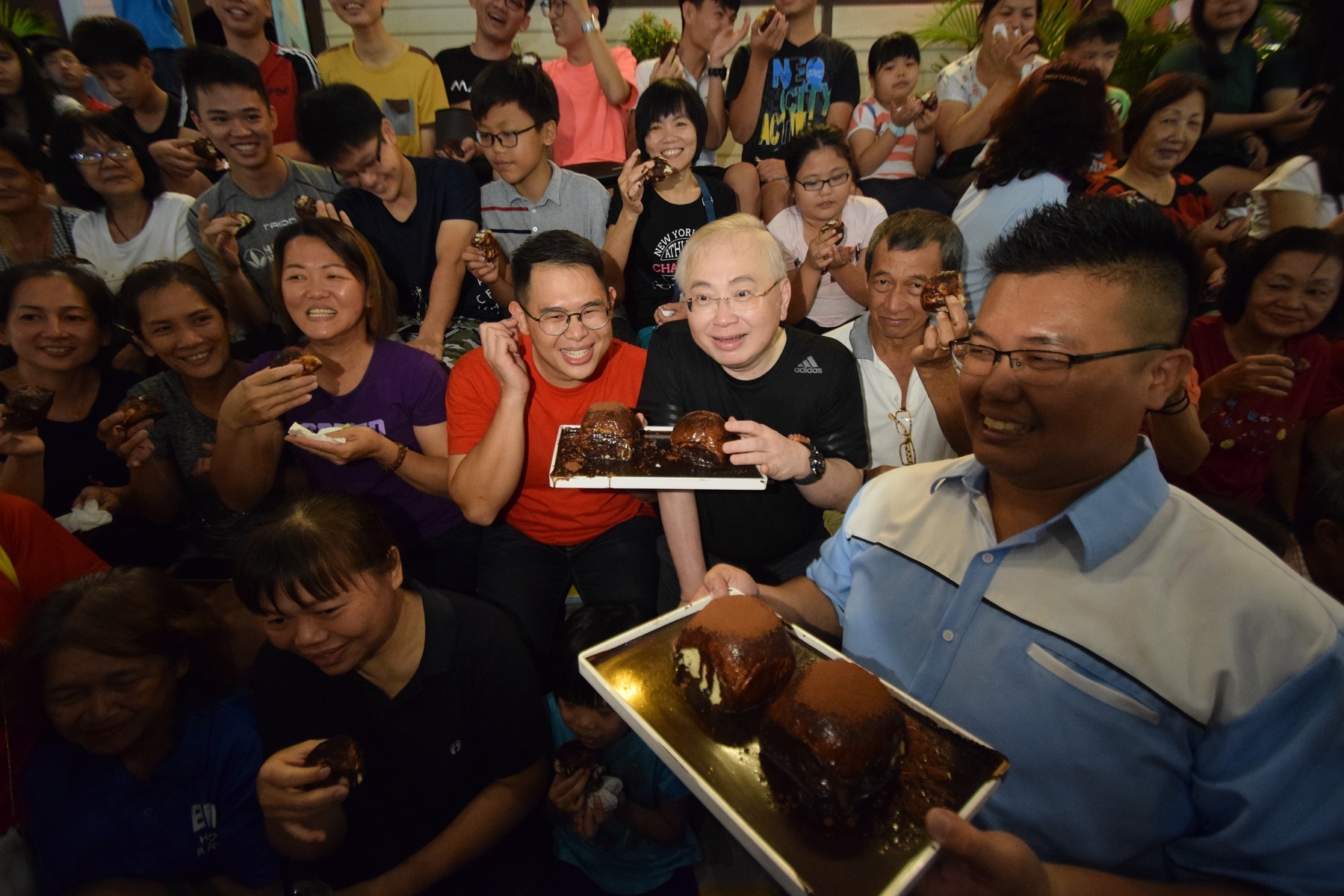 (柔佛.永平22日讯)500永平民众与马华亚依淡国会议席准候选人拿督斯里魏家祥及永平州席准候选人林添顺一起大啖最近爆红的“脏脏包”,缔造全马最多人同时吃下“脏脏包”记录!