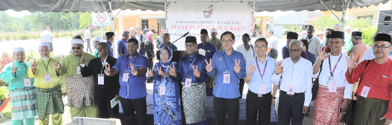 根据抽签结果,1号为伊党、2号国阵、3号希盟;选举官诺珊在中午12时35分正式宣布接受三方的提名。