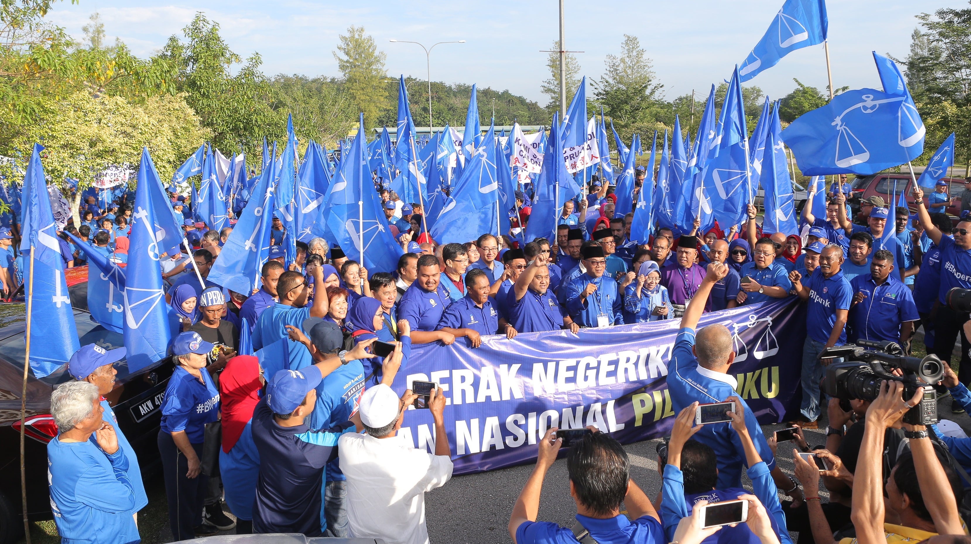 各党及独立人士候选人今早9时开始 提呈竞选申请,早上10时提名结束,霹 州选委会于下午2时召开新闻发布会,宣 布有12个国州议席出现一对一对垒,66 个国州议席出现三角战,以及5个国州议 席出现四角战。