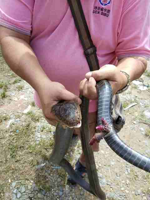 日前早上,超群路一家养猪场两名伊班工人听到储藏中心发出异响,即前往检查,惊见一条十多尺长的过江龙正在攻击一只四脚蛇,当时四脚蛇已被咬死。