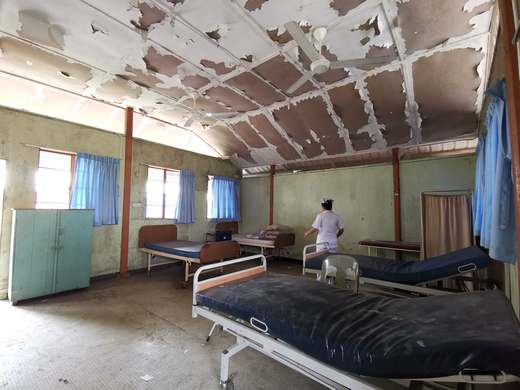 埔奕区州议员陈长锋日前带领记者走访弄山诊所,若非亲自走访真的难以相信眼前所看到的一切。病房置放5张铺满尘埃的病床,沾满污渍的枕头,抬头一望更是破烂不堪的天花板。