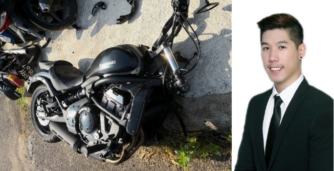 27岁的韩景光今日午夜12时30分驾驶重型摩哆车从巫罗加什驶往昔加末市区时,途经新山芙蓉道路186公里处,即阿芝路路口时,撞上从昔加末市区驶来右转的白色轿车。