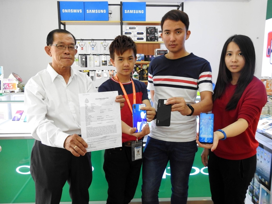 事主张靖敏(26岁)受询时表示,昨天下午约2时45分时,2名马来男子表明要为公司的幸运抽奖购买3台手机,以及为自己的孩子购买1台二手手机。