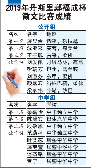 征文比赛筹委会主席沈玉萍表示,征文比赛今年特别设立了中学组让在籍中学生参与,并获得了良好的反应,未来也会推广到更多中学。