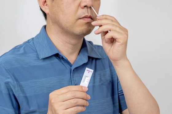 “如果自己真的没有信心做好,需要家人的帮忙,就必须做好预防措施。先准备一个没有人或宠物的空间,半个小时前做好准备,包括自检试剂盒、计时器、手套,同时半个小时内避免用漱口水漱口与吸烟,以免影响检测结果。若要家人协助,家人就必须穿上防护衣,如口罩,面罩、手套,以防万一。”