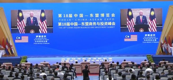 第18届中国-东盟博览会在中国广西南宁进行,依斯迈沙比利通过视频发表演说。