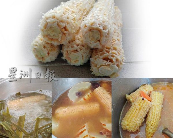 为了易于储存,购买了玉米后,都将玉米粒剥落, 然后存放在冰格。而不能吃的玉米梗,当然是丢弃了。有一天小妹提醒,玉米梗也可以用来煲汤,只是当天没打算煲烫,妈妈便试验式地丢入正在煮着的薏米水中。由于我不能吃糖,所以妈妈煮薏米水时是不添加糖的,然而添加了玉米梗的薏米水不但尝到了甜味,喝起来味道还像甘蔗水呢!