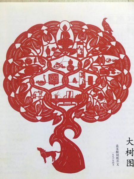 于1999年8月出版的《锦灰堆》,书前刊录了王世襄夫人袁荃猷在他80大寿时,特地用了剪纸艺术创作的《大树图》,为他贺寿;恢宏而细腻的《大树图》,用了15种图案,钜细靡遗地刻画了王老一生迷恋的玩意儿、收藏品,以及影响深远的研究成果,灵活灵现的表达在这张精彩的剪纸作品中,委实难得,亦很珍贵!也实实在在的流露出二人相濡以沫,相依相偎数十个春秋,鹣鲽情深的夫妻感情。