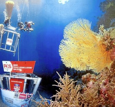 位于沙巴拉央拉央岛的海底邮筒,距离海面40米深,是全马乃至全世界“最深邮筒”。潜水客可将防水明信片投入海底邮筒,感受海底寄件的独特体验。