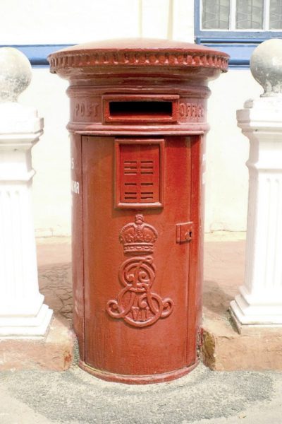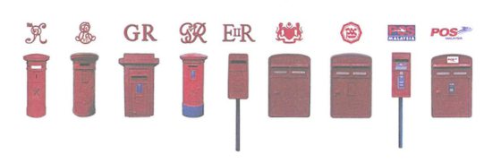 早在英殖民时期,邮筒就伫立在大马这片土地上 ,其中最经典也最常看见的莫过于圆柱形红色邮筒。这些从英国运过来本地的生铁邮筒,筒上标注GR、VR等英文大写字母的美术古典字体,代表当时在位的王室徽号,有的会上置王冠图案或附带罗马数字,下方会注明铸造厂的名称和地点。不同“王朝”制造的邮筒,使用的花押字也会不同,这些看似不起眼的设计细节和烙印,其实都透露着历史的讯息。