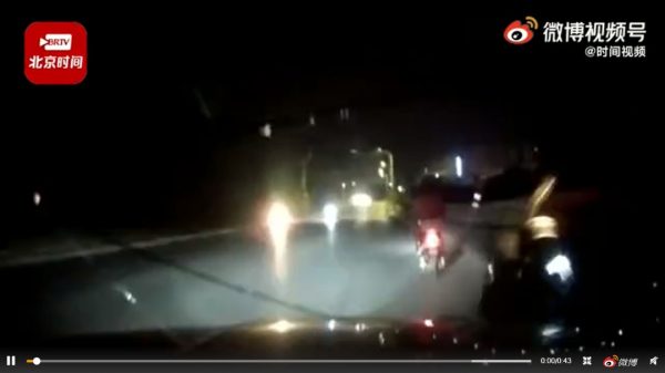 根据肇事车辆的行车记录器,女子在车中不断哭喊“不要”,但男子仍不听劝,下秒就连续碰撞前方行驶的两辆电动车和一辆摩托车。