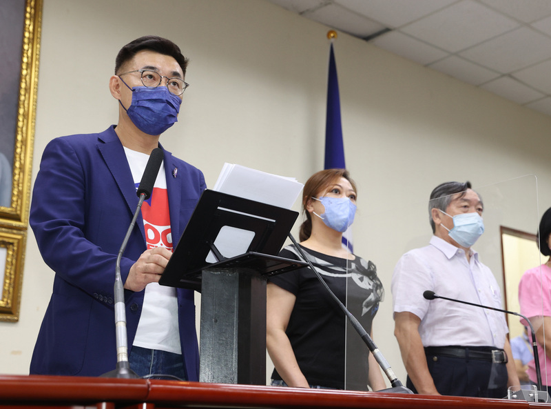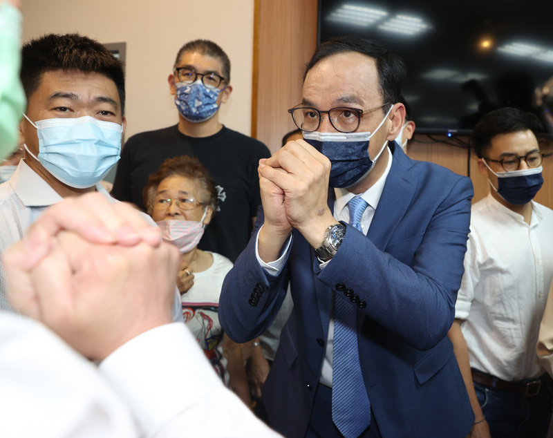江启臣提前到国民党中山厅宣布败选,同时也率党中央干部总辞。