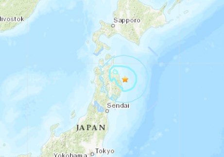 共同社报道,日本气象厅原先指地震震度6.0级,但随后修正至5.9级,地震震源深度则从50公里修正至56公里。