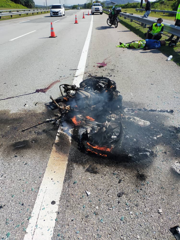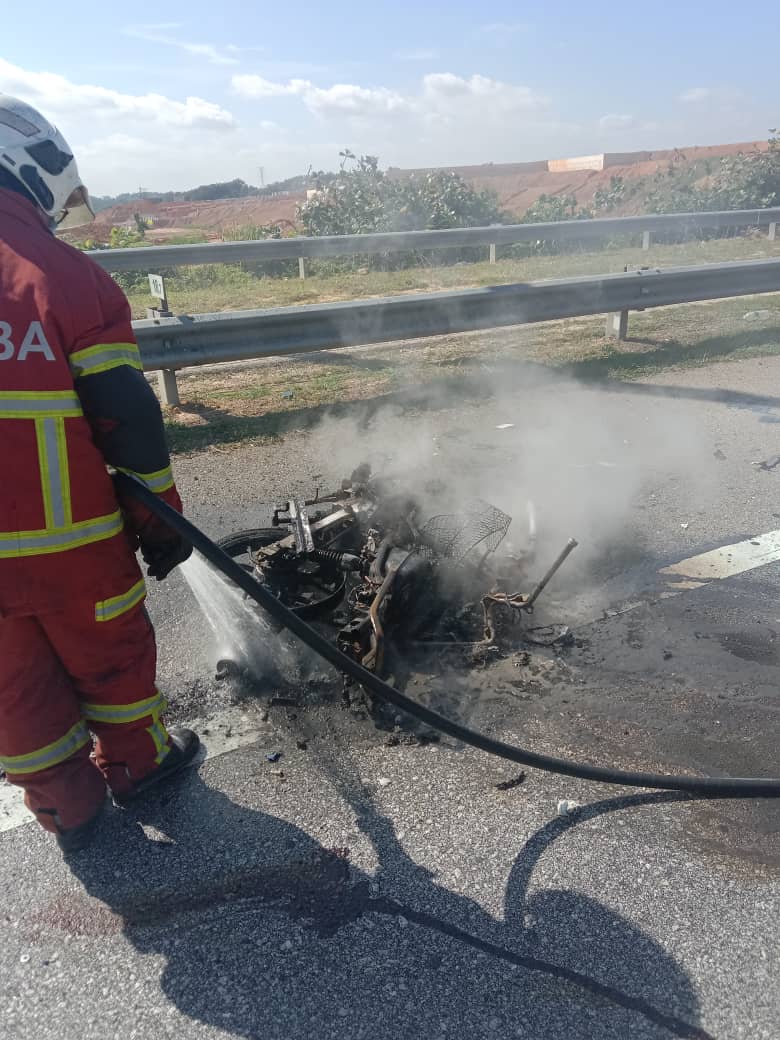 据行动指挥官弗兹指出,一名47岁的巫裔男子骑摩哆车在事发路段追尾一辆货卡,导致摩哆车起火燃烧,消拯人员到场后即将火势扑灭。