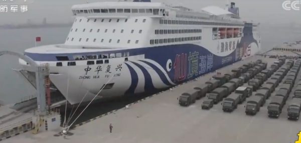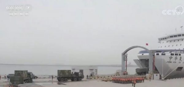 央视国防军事周四报道,这次航渡主要依托地方保障,同时水上输送要比从铁路上输送节省不少时间,这也加快了战斗力生成。画面显示,负责投送的游轮船体非常宽大,总重量达到4.5万吨,可以搭载大小车辆装备300多辆。