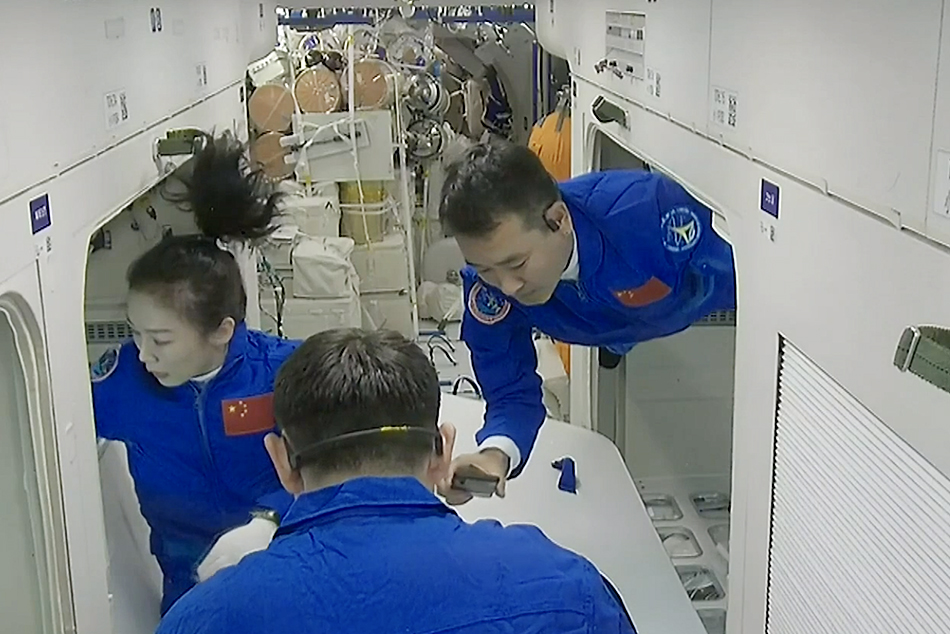 (北京16日综合电)中国“神舟十三号”载人飞船周六凌晨零时升空,于周六清晨6时56分,采用自主快速交会对接模式成功与中国太空站天和核心舱对接。3名太空人翟志刚、王亚平和叶光富于上午9时58分,先后进入中国太空站“天和”核心舱。当中,王亚平的冲天发型亮了。网民形容,王亚平老师的发型抢镜。