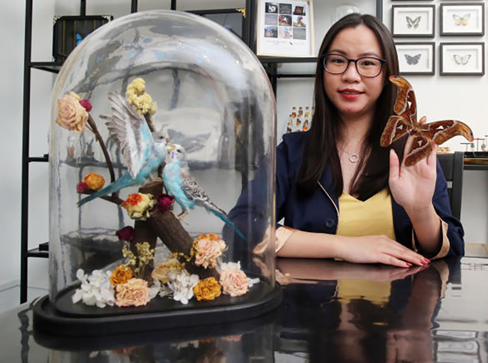 原本来新任职化学师的她,2个月前毅然放弃实验室的正职,全心投入动物标本的工作,还在珍珠山台租下店面,不仅在里面陈列作品,也开办工作坊,教公众如何制作简单的标本。