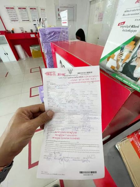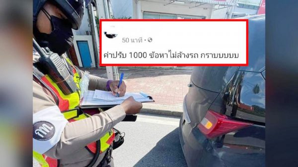 (泰国·曼谷18日讯)一名男子16日在脸书上PO出数张挨交警开1000泰铢(约马币1百20令吉)罚单的照片,指出自己被开罚的理由是不洗车。该男子觉得很荒谬,许多网民也觉得不可思议,因为没有哪条法律规定不洗车就要挨罚。