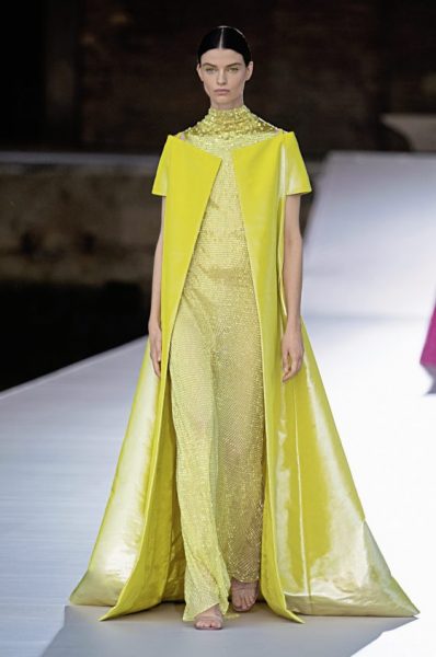 Pierpaolo Piccioli借由其他创作者的双手实现工坊的炼金魔法,尽情在缓慢的酝酿过程中用心聆听,将层叠的色彩、符号、背景、构图与留白转化为线条、剪裁与造型,邀请每位艺术家就服装进行直接对话,在两者的碰撞中衍生出新身分,并体现在系列服饰中。时装与艺术的对译,在这次实验中开出丰硕成果,既保留了两者相异的特质,又实现了联乘共融的社群精神。在这个富实验性的转化过程中诞生的系列,糅合了品牌创立的高订元素,包括轻巧飘逸的帽子以至华丽的舞会晚装。系列色彩鲜明缤纷,大量的褶裥细节增添流丽动感。修长的线条层次丰富,而短版造型则别具雕塑的质感。系列服饰融合精巧的手工艺,洋溢难以言喻的从容格调,为男女两性开拓无穷想像空间。