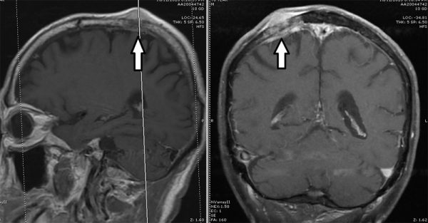 我用了立体定向开颅术,在廖大叔的头颅上切除了5公分乘6公分、厚度25毫米的颅盖,把肿瘤细胞、脑膜和病变组织完全切除干净,之后,再以钛镁重建颅骨和脑膜。