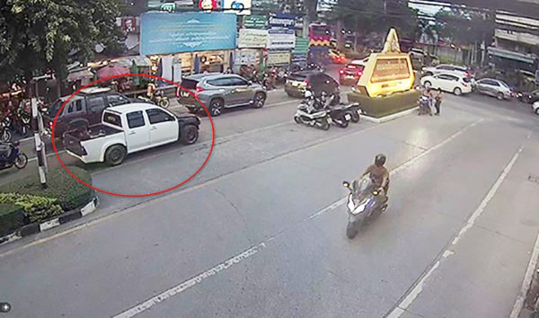 经警方确认,死者是丹蓬,现年58岁。从事发地周边的监控录像发现了可疑的货卡,当时丹蓬躺在皮卡车的车厢上,4名嫌疑人也全部都在车上。