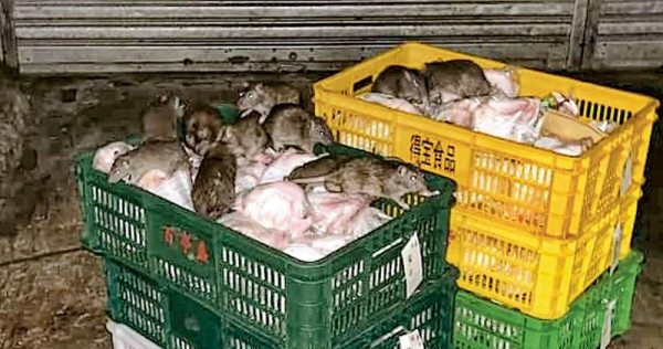 (香港7日讯)有香港市民昨天在facebook张贴照片显示,慈云山“强仔猪肉蔬菜专门店”关门後店外闲置多篮包装鸡,引来约10只老鼠聚集“开餐”,有慈云山居民获悉事件後表示恐怖,不再光顾。载有该店资料的facebook专页其後发文称属运输问题,并表示抱歉,已销毁鸡。食环署昨派员巡查该店,无发现老鼠踪迹,已严正警告负责人须采取有效措施,免食物受污染或变坏。