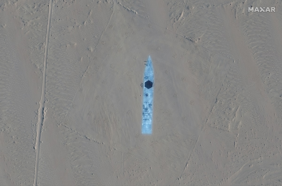 USNI News根据Maxar公司提供的卫星影像指出,在新疆若羌地区的复合设施,现地有等比例的美军航舰以及至少2艘勃克级神盾驱逐舰轮廓的标靶,场址邻近中方早先测试他们所谓“航舰杀手”东风-21D(DF-21D)反舰弹道飞弹的靶场。