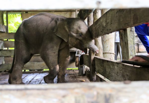 印尼保育官员表示,一头仅一岁的落入盗猎者陷阱,日前被村民发现后送往保育机构,当局为保住它性命将一半象鼻切除,但幼象两天后仍因感染不幸死亡。