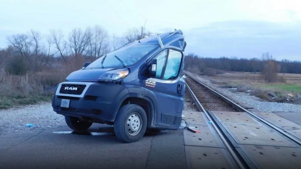 美国威斯康辛州一名亚马逊货运司机日前经过一处平交道时,因为他左耳失聪加上道路安全规划不良,导致他没有看到高速驶来的火车。当他发现靠近时,只能用力踩下油门。没想到幸运让他躲过一劫,整辆过车刚好从车头的地方被切成两半,他本人则是毫发无损。