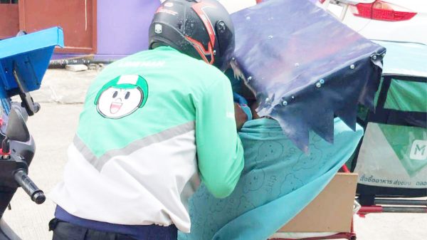 (泰国·曼谷25日讯)脸书女网友近日分享了使用送餐服务时的难忘经历,指出素辇府一名送餐小哥为了赚钱养家,而又不影响到自己照顾年幼的孩子,特地在摩托车后座安装了一个栏架,让孩子能够躺坐在架子里,以解决自己到各地送餐,又可以随时照顾孩子的问题。