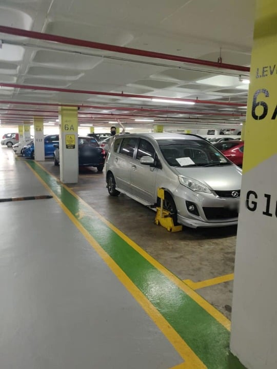 (八打灵再也28日讯)一名男子在吉隆坡一家百货公司停车时被锁车轮,被告知自己把车停在身障人士(OKU)停车格时,令他大感惊讶,因为停车格根本没有涂上蓝色或其他颜色的漆。